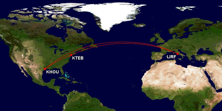 Like the example below: Someone booked an international air ambulance mission from Houston, TX (KHOU) to Rome, Italy (LIRF). After the transport in Rome, Italy, is completed, the returning flight leg from Rome, Italy (LIRF) back to base in Houston, TX (KHOU) becomes available for sale. In this case, the empty leg was the return flight from Rome, Italy (LIRF) to Teterboro, NJ (KTEB), which matched the planned route by 75%. After completing the second transport at Teterboro, NJ (KTEB), the team returns to Houston, TX (KHOU) base.