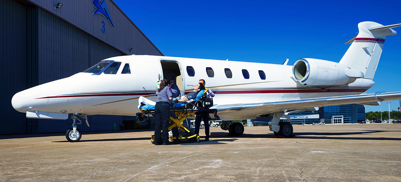 A critical-care air ambulance flight involves specialized, highly trained medical professionals onboard a medically configured air ambulance jet.