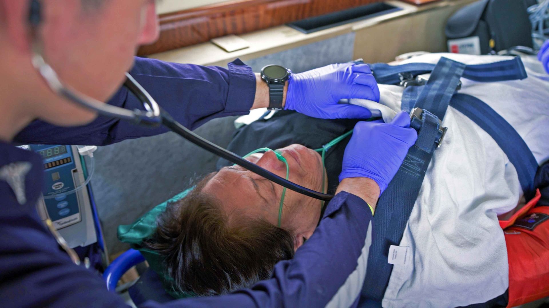 The equipment used for Special Populations during aeromedical missions can vary depending on the patient’s medical condition. That equipment includes specialized aeromedical stretchers with built-in oxygen, suctioning, and electrical inverters to connect portable medical equipment such as mechanical ventilators, intravenous infusion pumps, defibrillators, cardiac monitoring, pulse oximeters, and more.